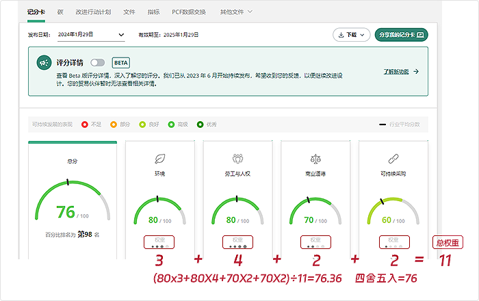 它主要关注企业在环境、社会责任、劳工权益和道德方面的表现。EcoVadis通过对企业提交的问卷调查和相关信息进行综合分析,给予企业在0-100分之间的评分。评分越高,表明企业在可持续发展方面表现越好。