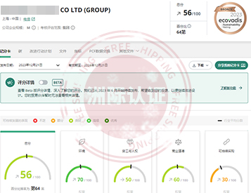 上海***股份有限公司顺利通过EcoVadis评估,最终以56/100分获得铜牌勋章