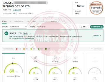 江苏**智能科技有限公司顺利通过EcoVadis评估,最终以60/100分获得铜牌勋章