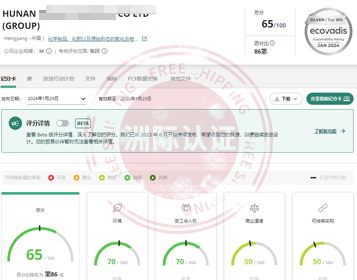 湖南**化工有限公司顺利通过EcoVadis评估,最终以65/100分获得银牌勋章